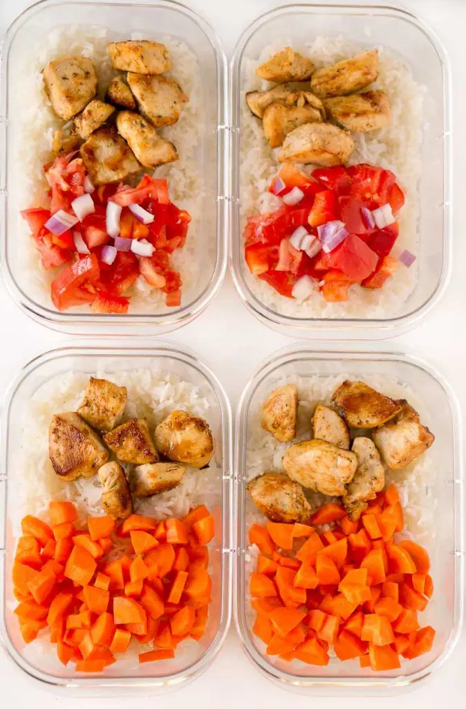 Rather than starting from scratch every week, have a meal plan, ideally a meal plan template that you rotate every month. This will save you a lot of time and energy. You can also add some variety in your meal prep every week by adding a couple of new meals to try out weekly. If you like them, add them to your meal preparation plan. Having a meal plan for your meal preparation will help you get more organized when you shop at the grocery store. Having a meal plan and writing down the groceries you need for the week will help you stay away from impulsive shopping, buying refrigerated prepackaged meals and unnecessary spending on sweets & highly processed foods.